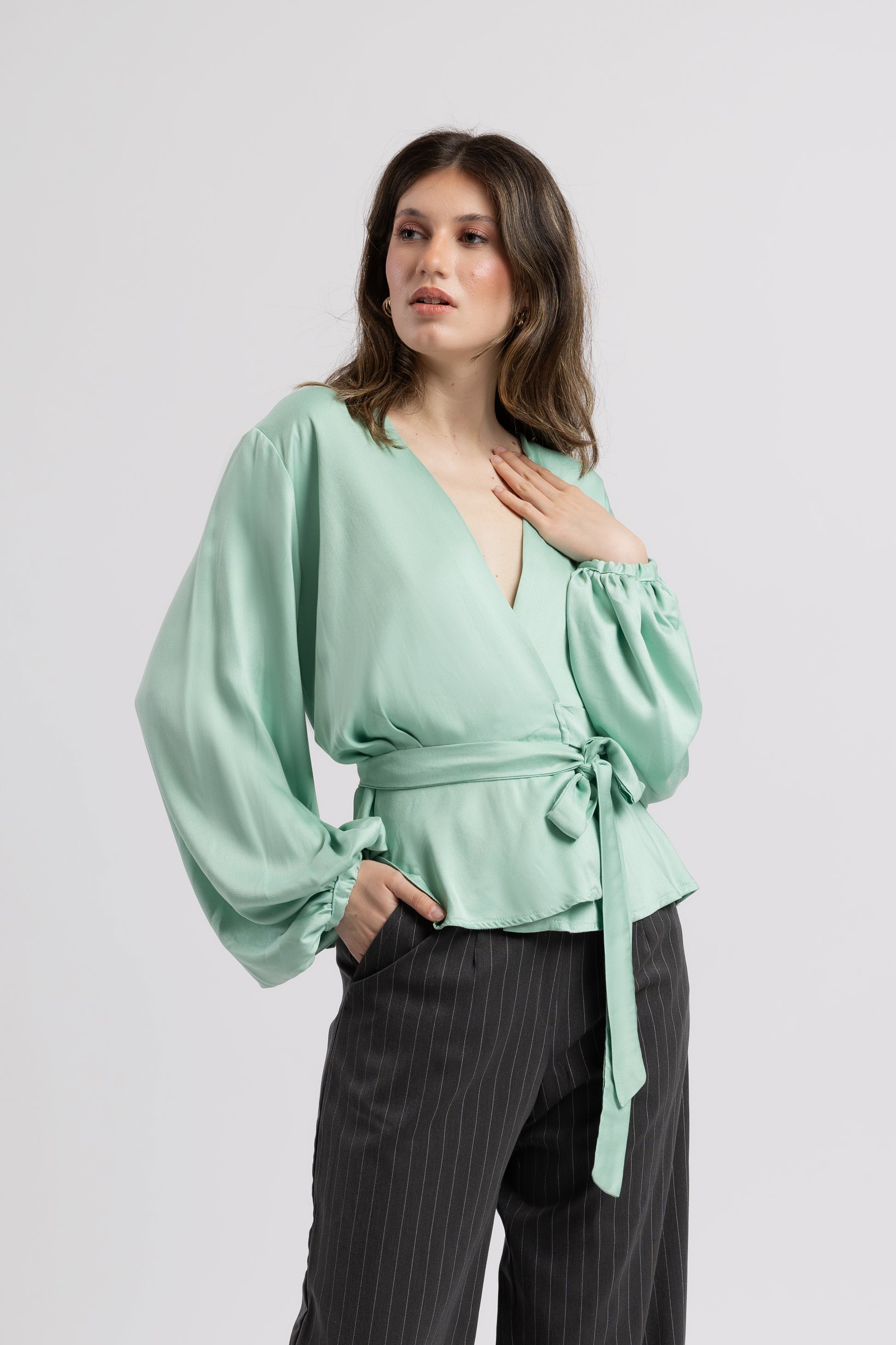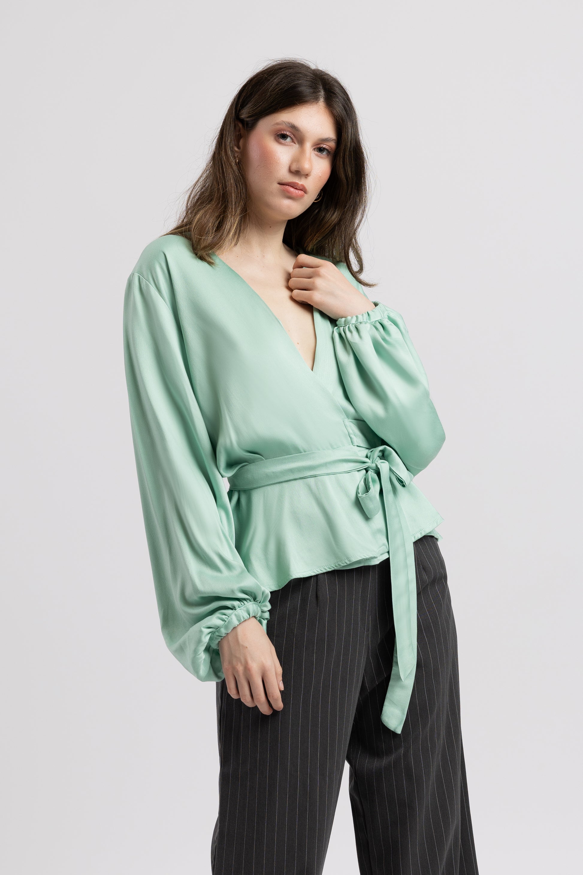 Bluza Soft Wrap este alegerea ideală pentru garderoba capsulă – elegantă, versatilă și mereu actuală.