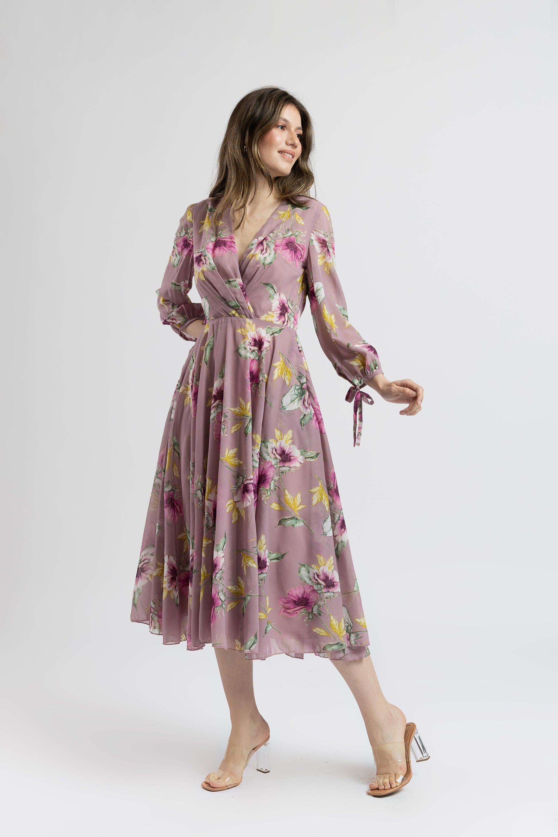 Această rochie midi cu imprimeu floral este un manifest al eleganței lejere, ideală pentru zilele calde și momentele în care vrei să îmbini confortul cu feminitatea. Realizată din voal ușor, cu o croială petrecută care pune în valoare silueta, este alegerea perfectă pentru plimbări, evenimente de zi sau escapade de weekend.